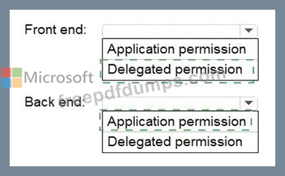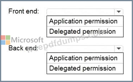 You are developing a web app that will use the Microsoft Graph API. The app will use a front end to authenticate users and a backend to provision new unified groups.