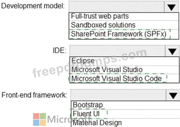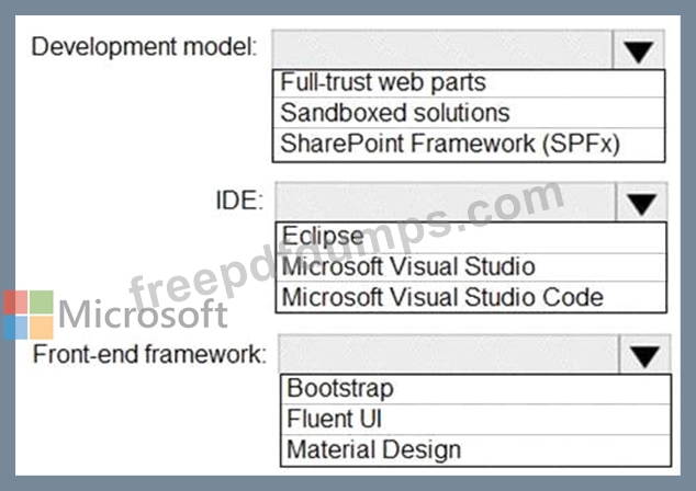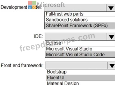 You need to recommend the development environment and tools for the redesign of the research department's SharePoint Online sites.