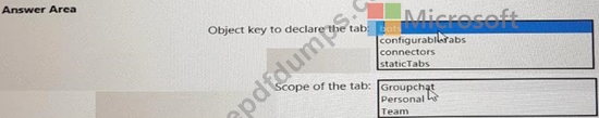 You are building a new tab as part of a new Microsoft Teams application. Users will experience the tab privately.