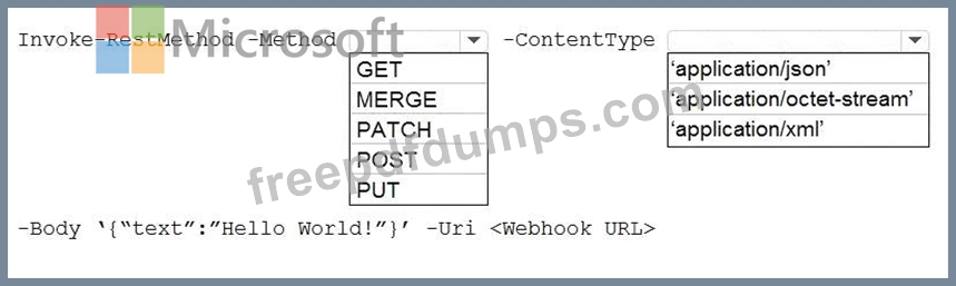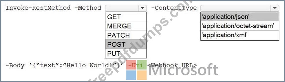 How should you complete the PowerShell command? To answer, select the appropriate options in the answer area.