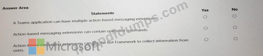 For each of the following statements, select Yes if the statement is true. Otherwise, select No.