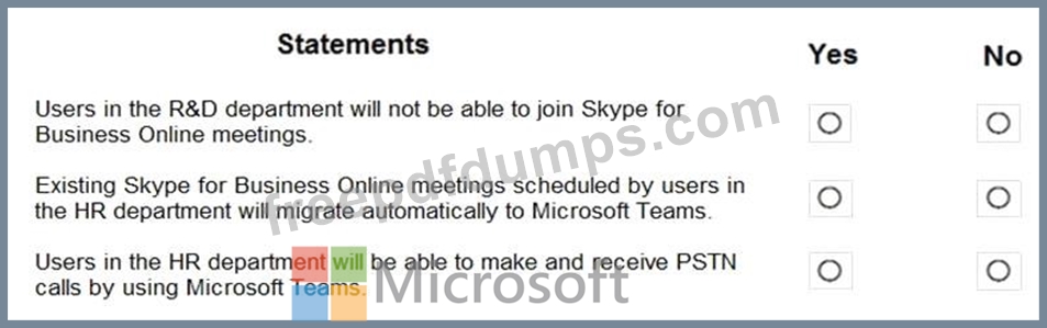 You plan to upgrade the Skype for Business Online users to Microsoft Teams.