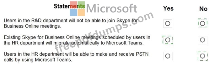Your company uses Microsoft Skype for Business Online and Microsoft Teams.