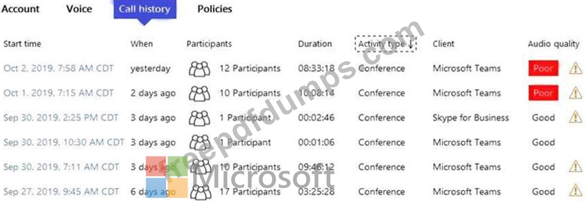 You view the call history as shown in the Call History exhibit. (Click the Call History tab.)