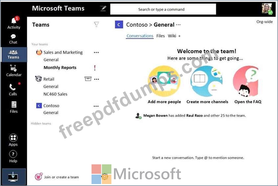 From the Microsoft Teams client, you review the teams shown in the exhibit. (Click the Exhibit tab.)