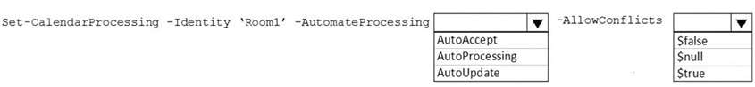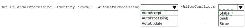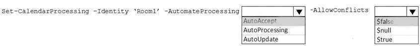 You need to ensure that Room1 automatically accepts meeting invitations. The solution must prevent meeting invitations from being accepted if the room is unavailable.