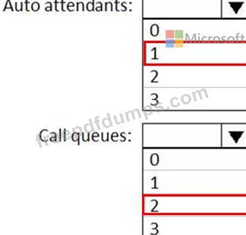 What is the minimum number of auto attendants and call queues you should configure to meet the requirements? To answer, select the appropriate options in the answer area.