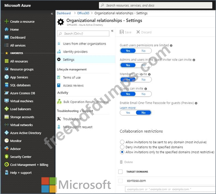 You have the organizational relationship settings shown in the Organizational Relationship exhibit. (Click Organizational Relationship tab.)