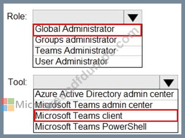 You need to identify which role-based access control (RBAC) role is required to create the team, and which tool must be used to create the team. The solution must use the principle of least privilege.