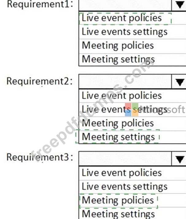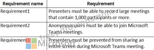 You need to configure Microsoft Teams to meet the requirements shown in the following table.