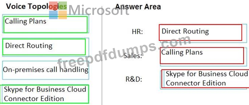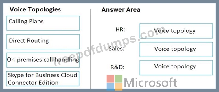 You need to recommend a voice topology for the departments. The topology must meet the calling requirements and the security requirements.