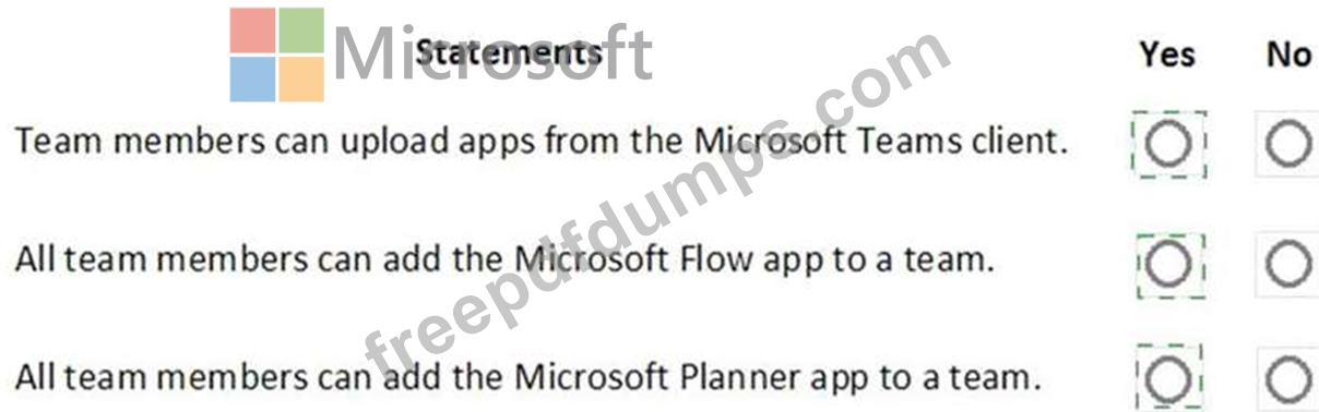 For each of the following statements, select Yes if the statement is true. Otherwise, select No.