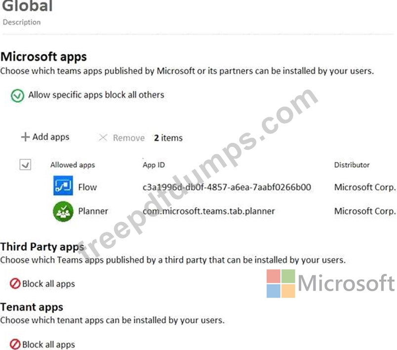 The company's global app permission policy is configured as shown in the Permission Policy exhibit. (Click the Permission Policy tab.)