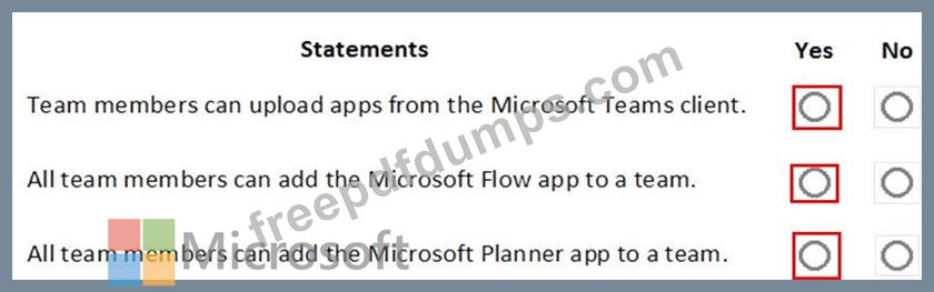 For each of the following statements, select Yes if the statement is true. Otherwise, select No.