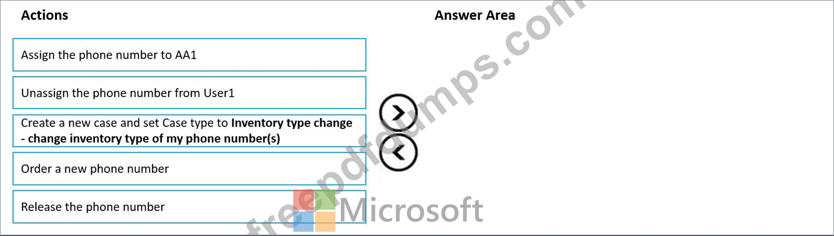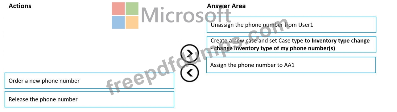 Which three actions should you perform in sequence in the Microsoft Teams admin center? To answer, move the appropriate actions from the list of actions to the answer area and arrange them in the correct order.