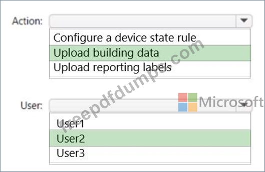Which action should be performed, and which user can perform the action? To answer, select the appropriate options in the answer area.