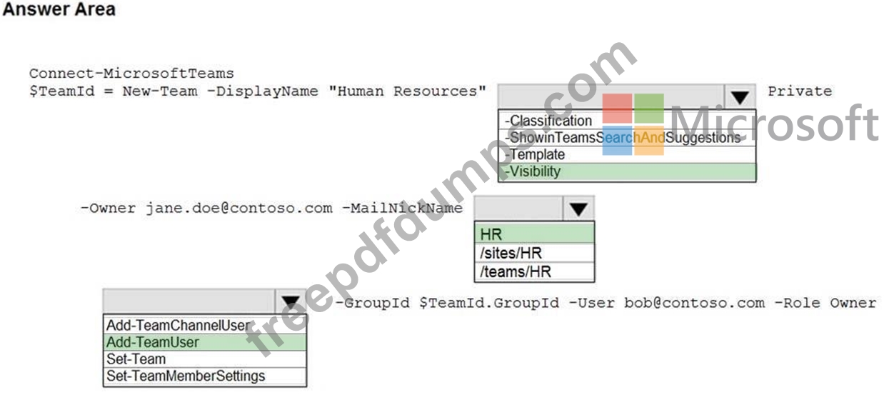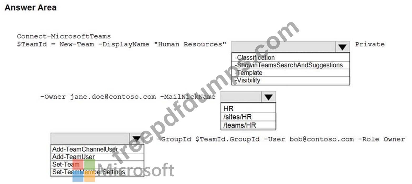 You need to create a new Microsoft Teams team named Human Resources that meets the following requirements: