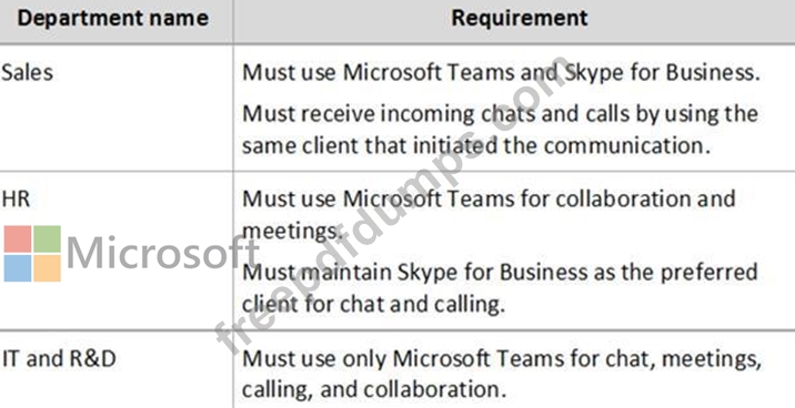 Litware identifies the following requirements for a planned upgrade from Skype for Business Online to Microsoft Teams: