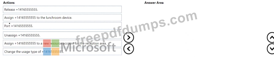 You need to implement the planned changes for the +14165555555 reception area number. You create a new call queue.