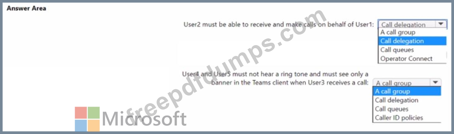 * User4 and User5 must not hear a ring tone and must see only a banner in the Teams client when User3 receives a call.