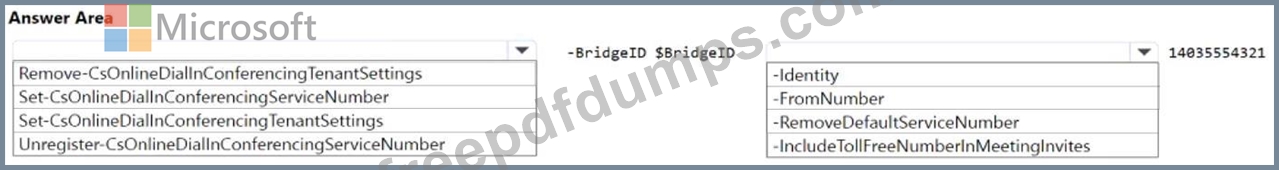 You discover that the Conference Bridge list contains two dial-in phone numbers for an office in Calgary. One of the dial-in phone numbers is +14035554321 and is configured as a secondary number for the Calgary office. The number is NOT set as the default.
