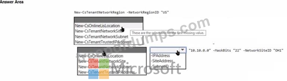 How should you complete the PowerShell script? To answer, select the appropriate options in the answer area.