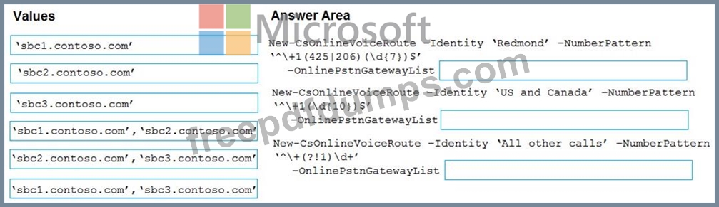 You deploy Microsoft Teams Phone. You have three Session Border Controller (SBCs) named SBC1, SBC2, and SBC3.