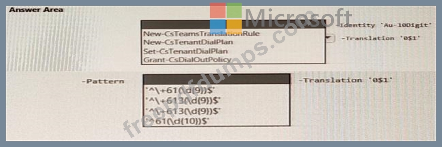 You need to ensure that numbers dialed from the Melbourne warehouse conform to the dialing rules of the phone earner. How should you complete the command? To answer, select the appropriate options in the answer are a. NOTE: Each correct selection is worth one point.