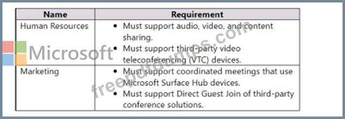 You have two teams that have meeting room requirements as shown in the following table.