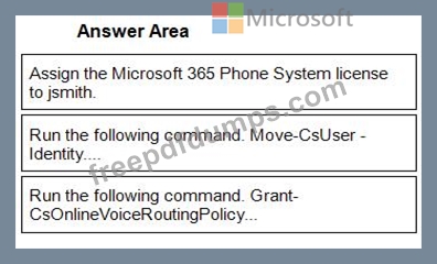 You need to migrate a Vancouver facility user named jsmith from Skype for Business Server to Teams.