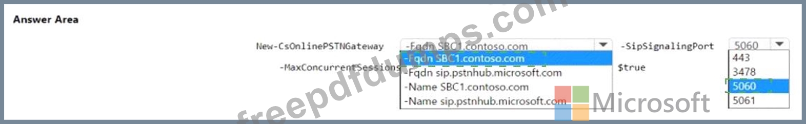 You have a Microsoft Teams Phone deployment and a Session Border Controller (SBC) named SBC1.contoso.com.