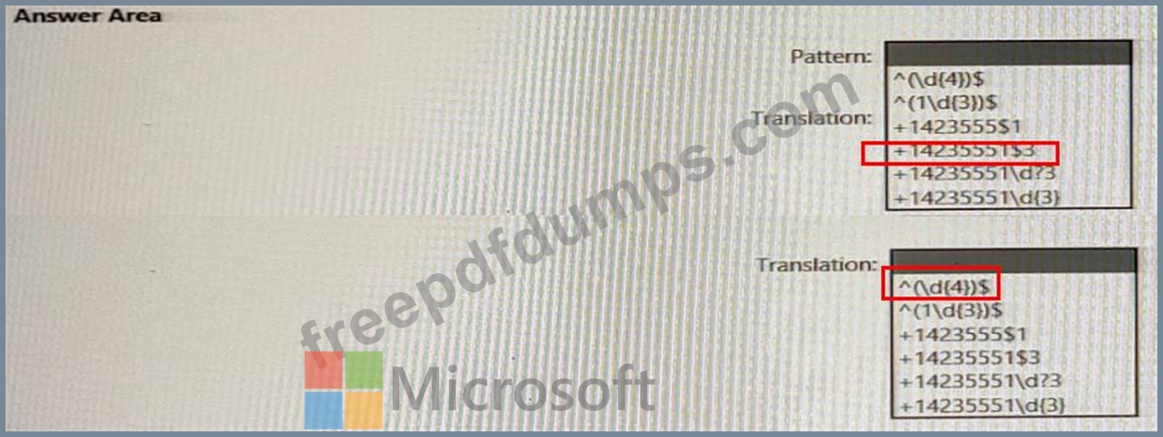 You need to ensure that you can use four-digit dialing for your numbers in Teams. The solution must minimize administrative effort. How should you configure the normalization rule? To answer, select the appropriate options in the answer are a. NOTE: Each correct selection is worth one point.
