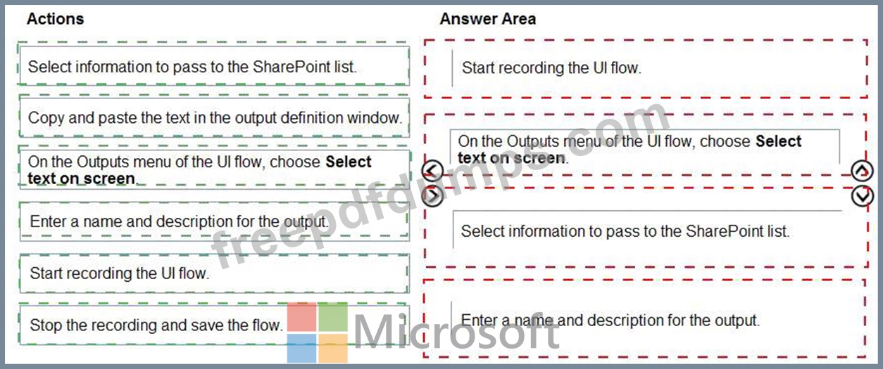 Which four actions should you perform in sequence? To answer, move the appropriate actions from the list of actions to the answer area and arrange them in the correct order.