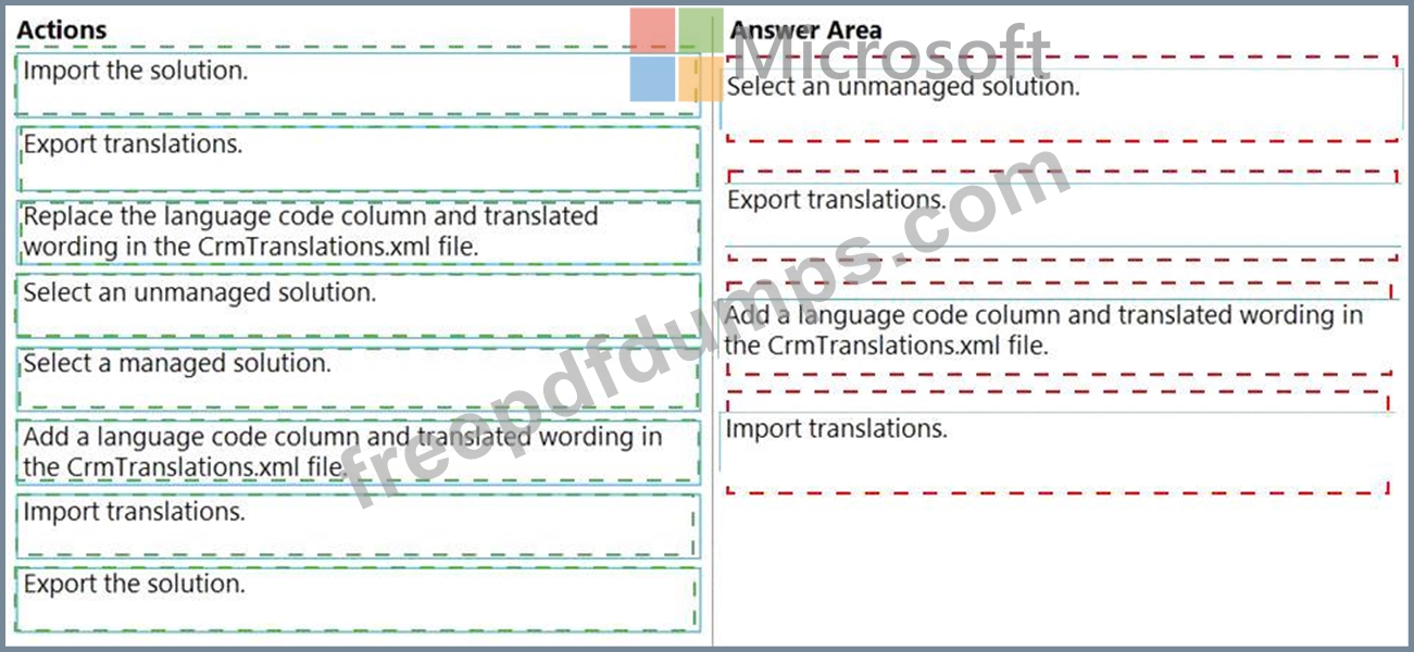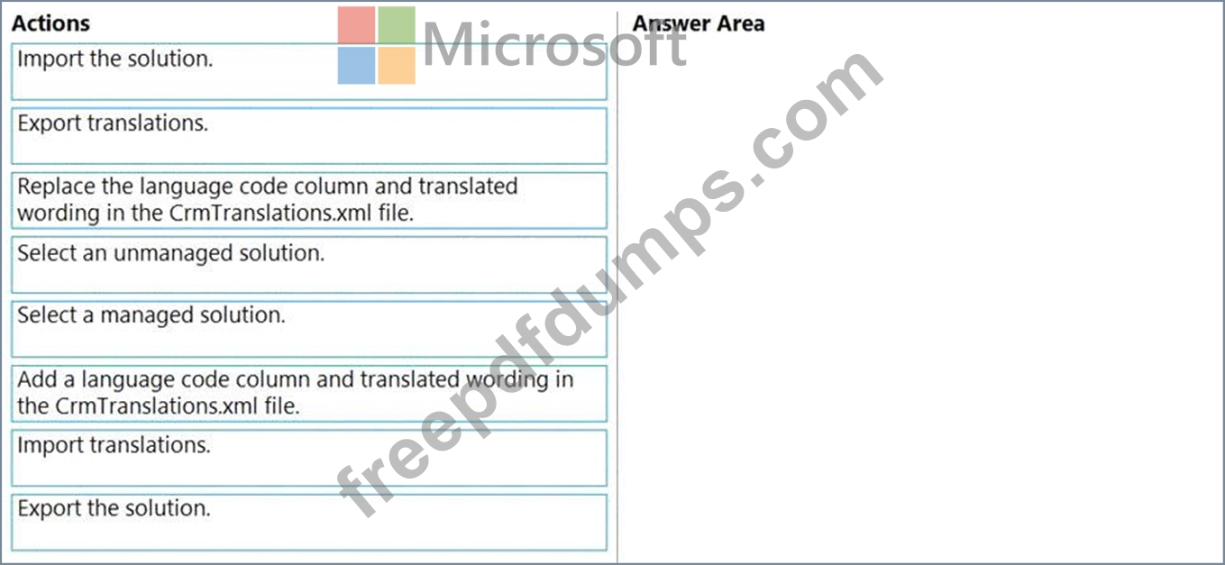 Which four actions should you perform in sequence for each language? To answer, move the appropriate actions from the list of actions to the answer area and arrange them in the correct order.