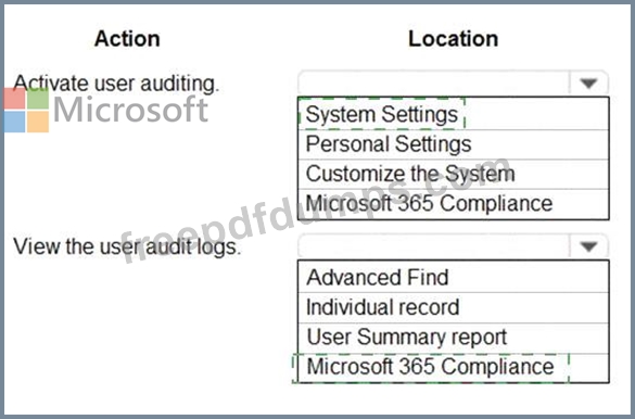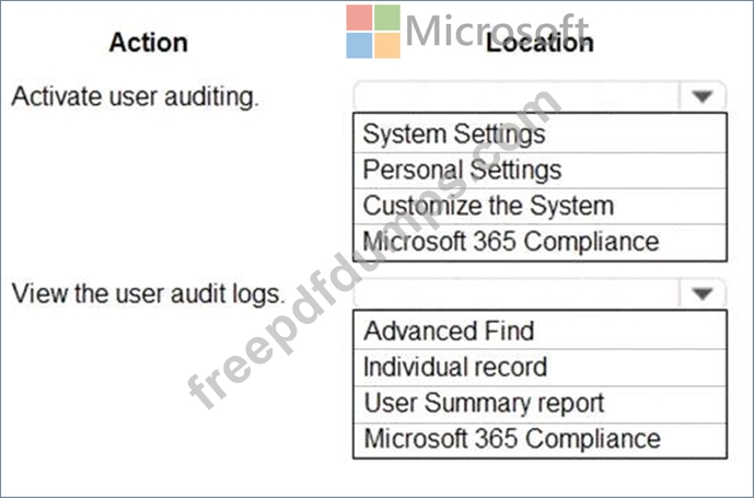 Where does each action need to be performed? To answer, select the appropriate options in the answer area.