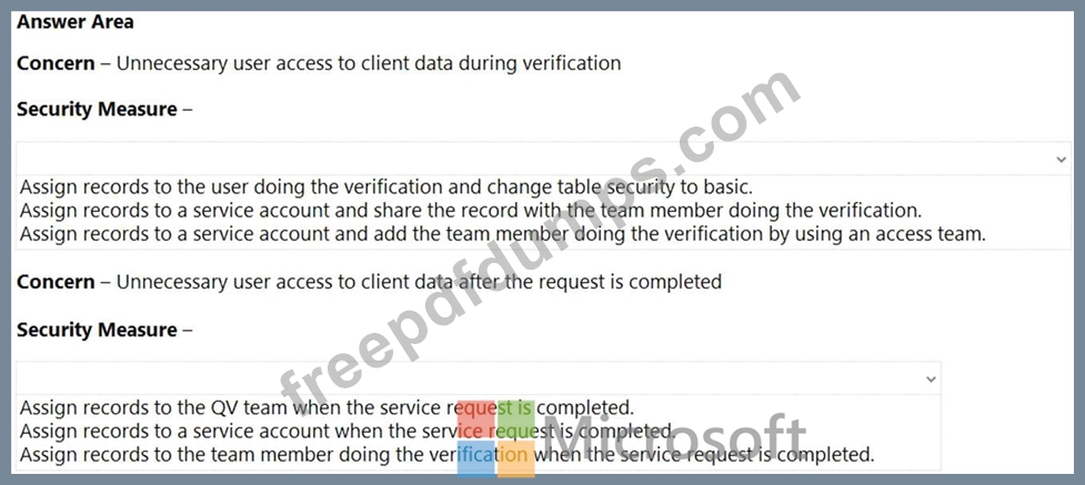 Which security changes should you make? To answer, select the appropriate options in the answer area.
