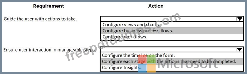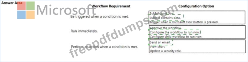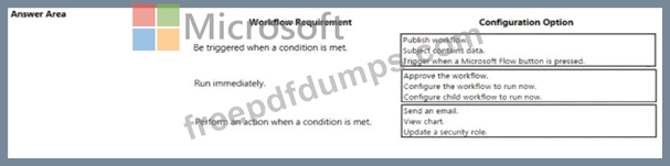 You ate a Dynamics 365 Customer Engagement administrator. You create workflows to automate business processes. You need to configure a workflow to meet the following requirements: