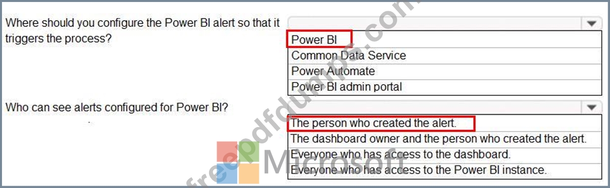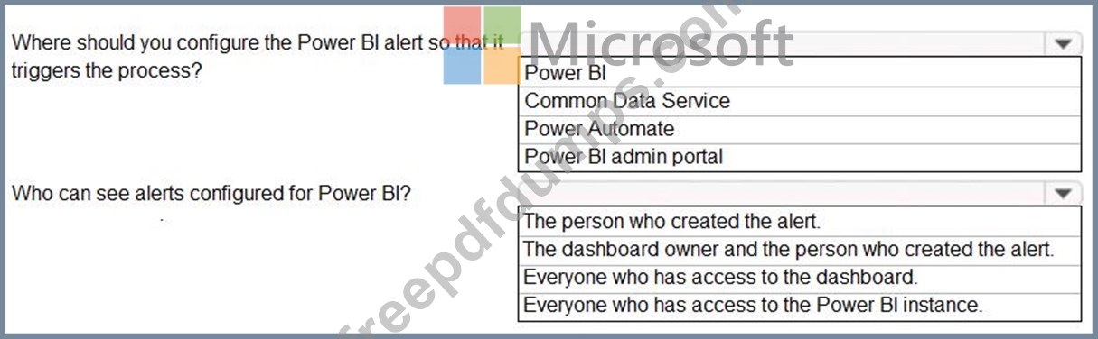 You need to alert users when the value of a tile exceeds a threshold. To answer, select the appropriate options in the answer area.