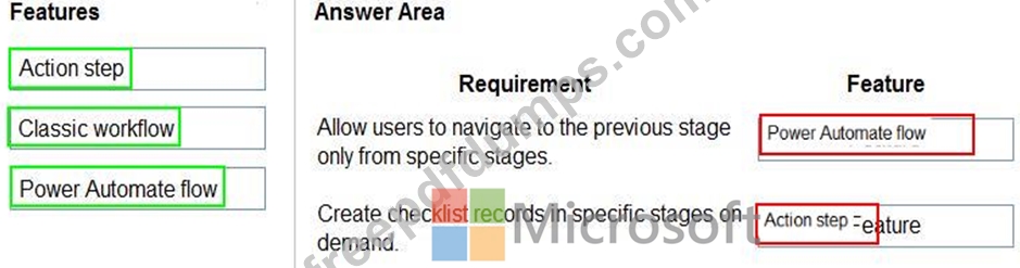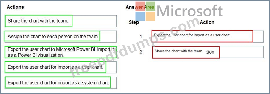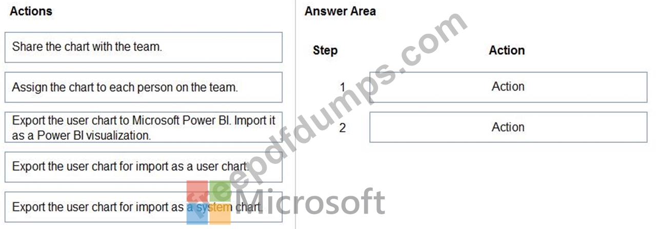 Which actions should the salesperson perform? To answer, drag the appropriate actions to the correct users. Each action may be used once, more than once, or not at all. You may need to drag the split bar between panes or scroll to view content.