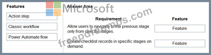 What should you implement? To answer, drag the appropriate features to the correct requirements. Each feature may be used once, more than once, or not at all. You may need to drag the split bar between panes or scroll to view content.