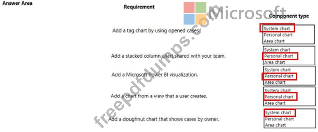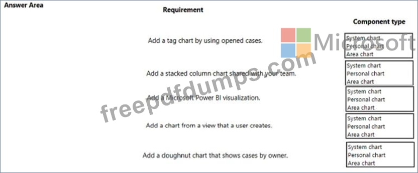 You need to create a dashboard that displays information on help desk cases that ate handled each week. Which dashboard components should you use? To answer, select the appropriate options in the answer are a. NOTE: Each correct selection is worth one point.