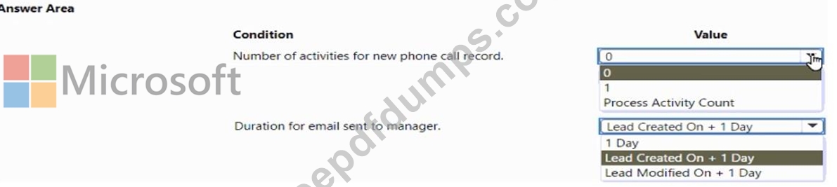 * Managers assign lead records to the sales department. A new phone call record must be created if a lead record has no activities.