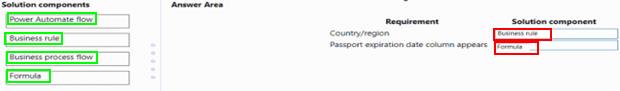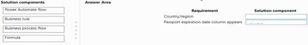 What should you configure? To answer, drag the appropriate solution component to the correct requirements. Each solution component may be used once, more than once, or not at all. You may need to drag the split bar between panes or scroll to view content.