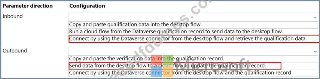 How should you set up the input and output parameters? To answer, select the appropriate options in the answer area.