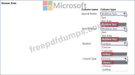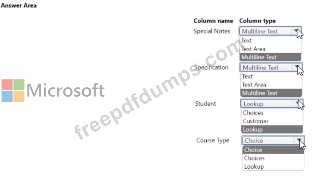 Which column types should you choose? To answer, select the appropriate options in the answer area.
