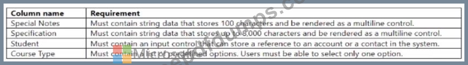 You are modifying a model-driven app. You set up a customer table in Microsoft Power Platform to retrieve user dat a. You set up a form with the following columns for users to enter their data. The form includes the following columns:
