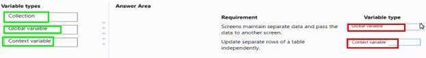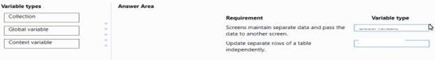 Which variable types should you use? To answer, drag the appropriate variable types to the correct requirements. Each variable type may be used once, more than once, or not at all. You may need to drag the split bar between panes or scroll to view content.