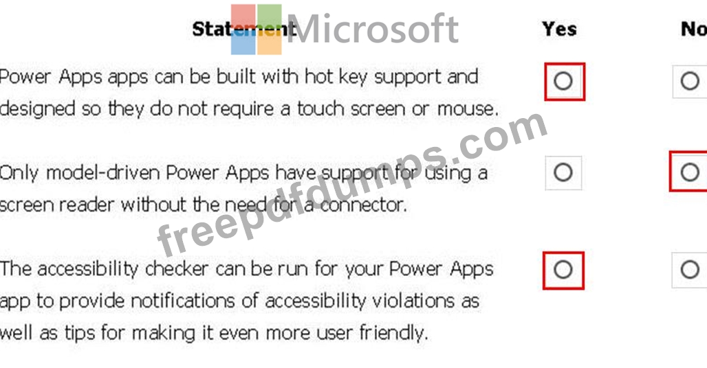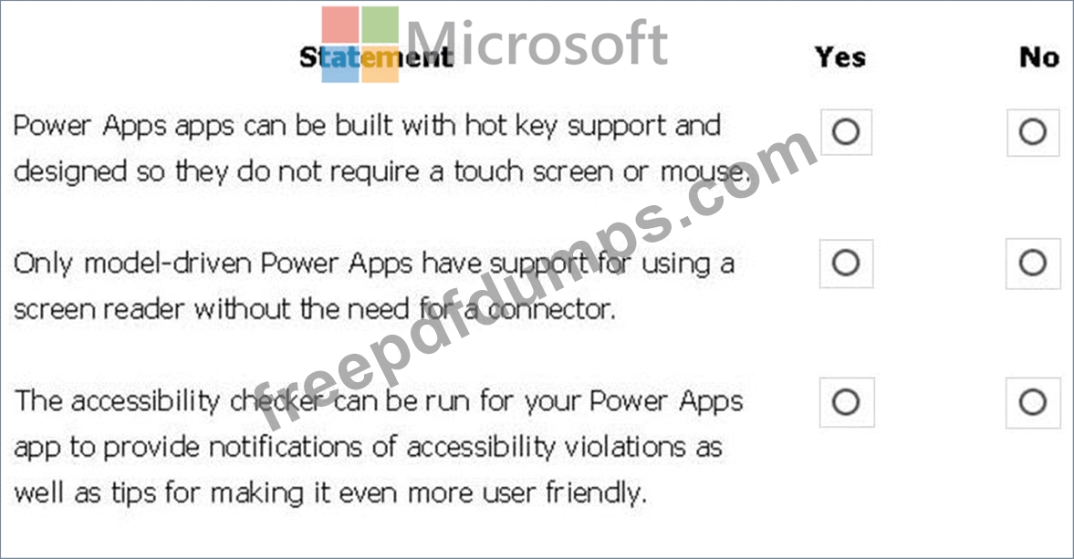 For each of the following statements, select Yes if the statement is true. Otherwise, select No.