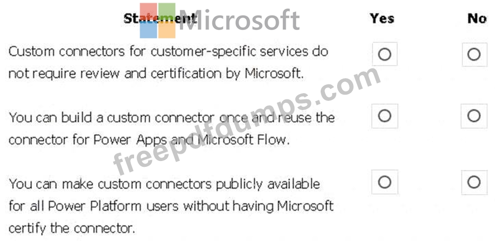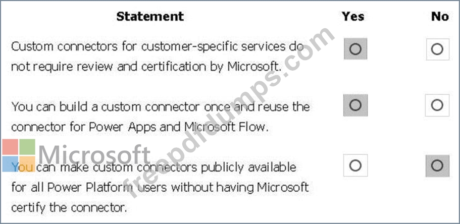 For each of the following statements, select Yes if the statement is true. Otherwise, select No.
