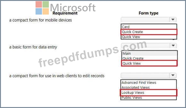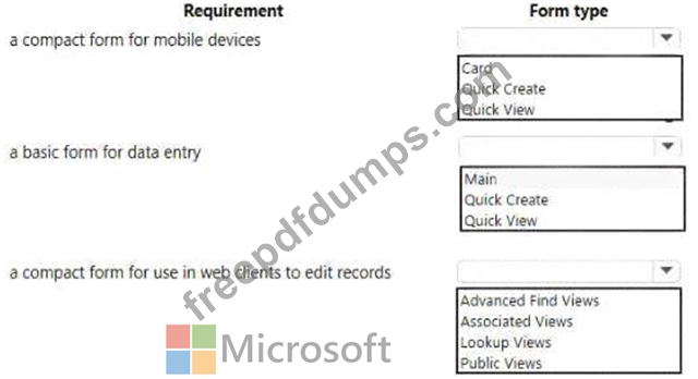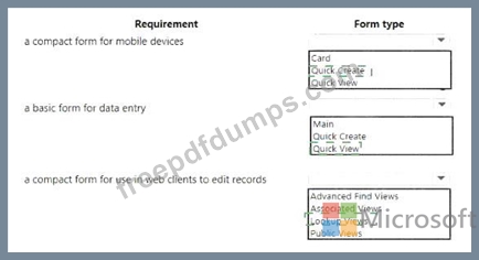 Which form types should you use> To answer, select the appropriate options in the answer area.
